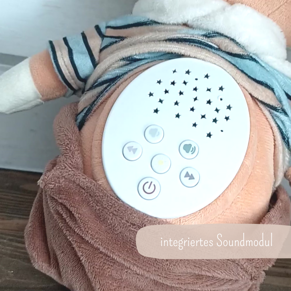 Mit sanften Melodien, vertrauten Klängen und dem eigenen Namen entsteht ein wiederkehrender Moment der Ruhe – der deinem Kind hilft, leichter abzuschalten und entspannt einzuschlafen.