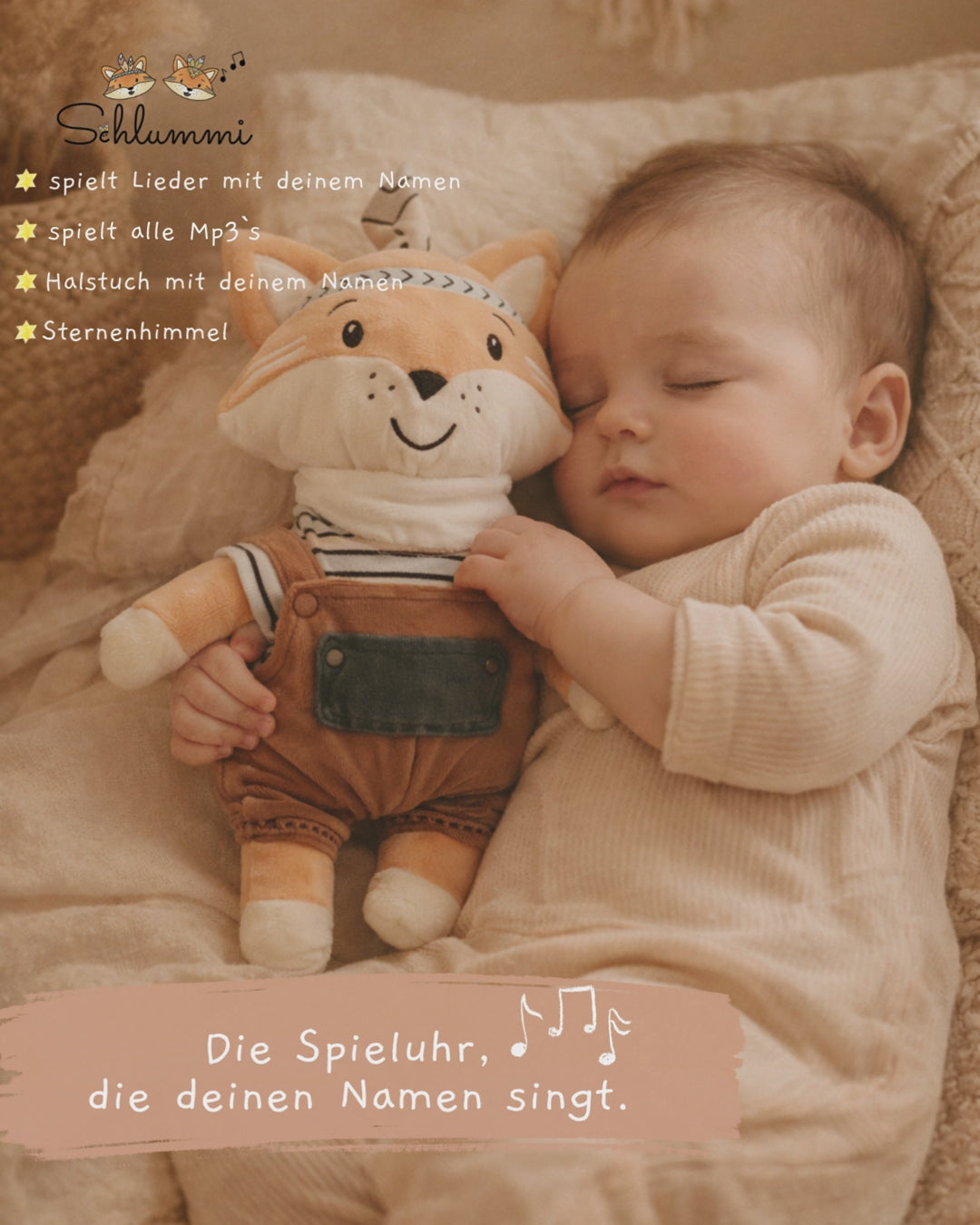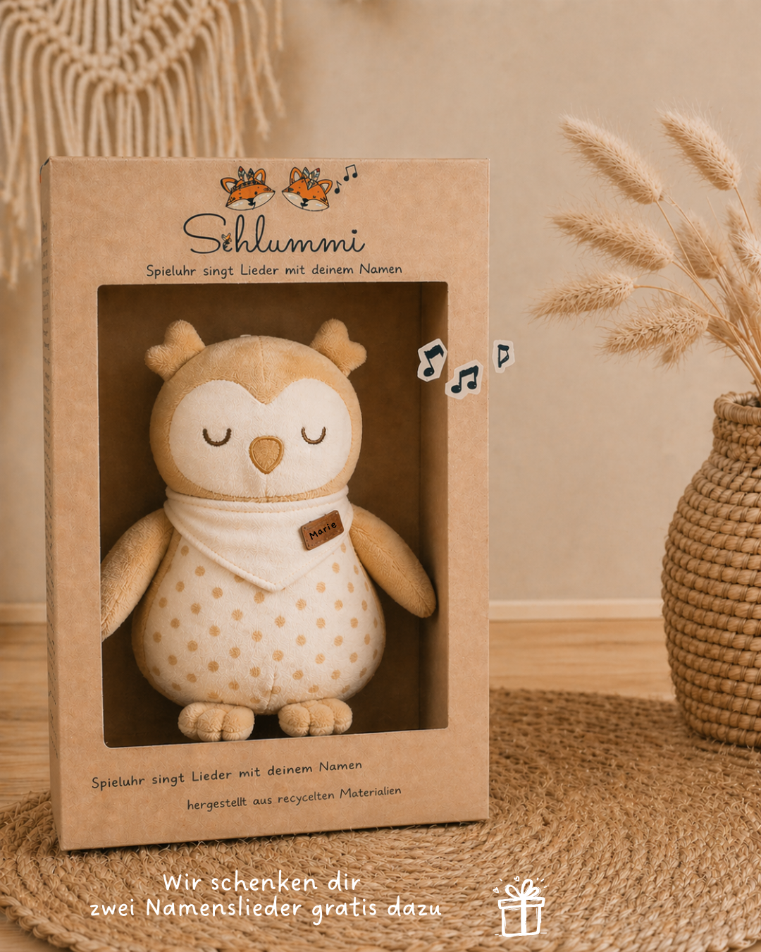 Die Schlummi Spieluhr singt sanfte Melodien – personalisiert mit deinem Wunschnamen.