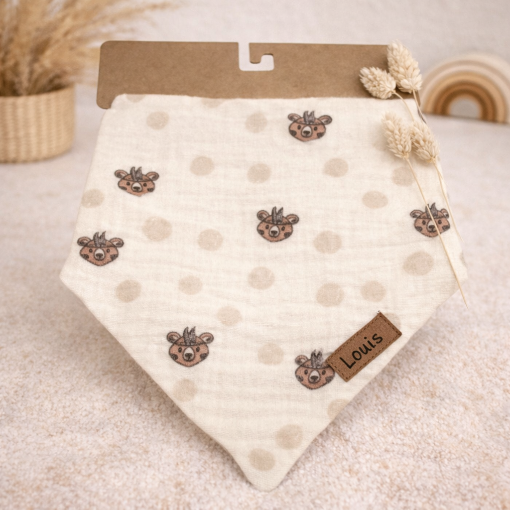 Personalisiertes Bären- Halstuch aus 100% Baumwolle – mit deinem Wunschnamen