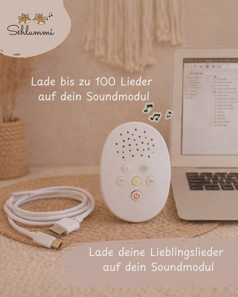 🔄 Herausnehmbares Soundmodul zum einfachen Bespielen. Spielt auch deine Wunschlieder im Mp3-Format.